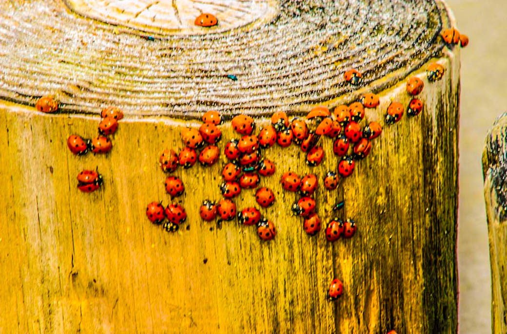 Insel Hiddensee. Buhne mit Marienkäfern.