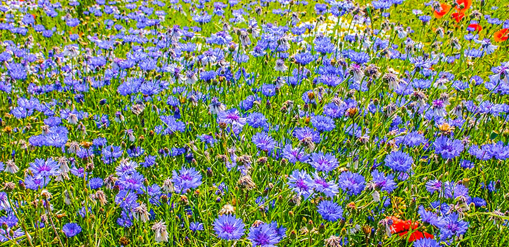 Frühlingswiese mit Kornblumen.
