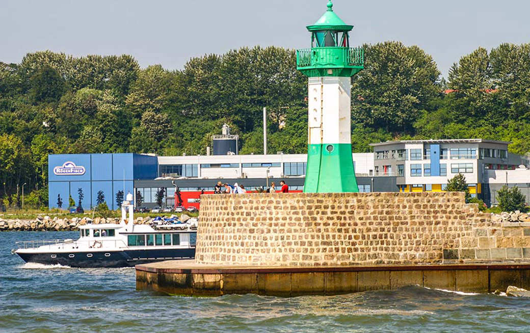 ole mit Leuchtfeuer und im Hintergrund die Fischfabrik von Sassnitz.